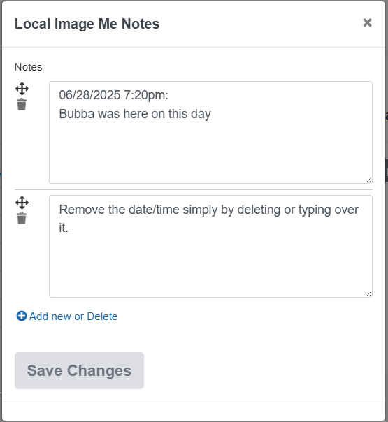 Members, Locations and Persons have an update notes option. These notes can be used in any way you want.